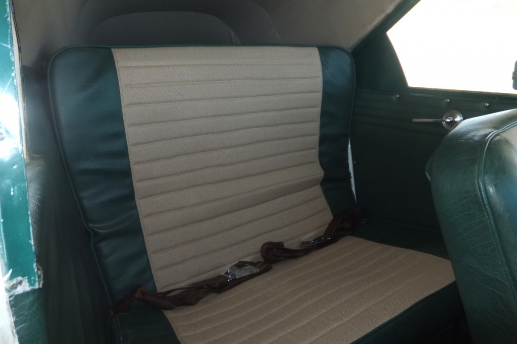 - Green Vinyl Seats with Tan Cloth Inserts